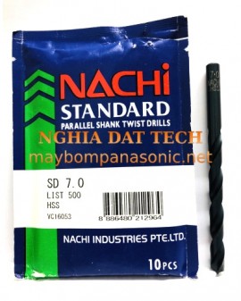 Mũi khoan sắt 7mm Nachi có đường kính khoan là 7mm, tức là nó tạo ra một lỗ có đường kính 7mm khi được sử dụng. Điều này có nghĩa là nó thích hợp để khoan các lỗ nhỏ hoặc các lỗ có kích thước cụ thể trên các vật liệu sắt và thép.